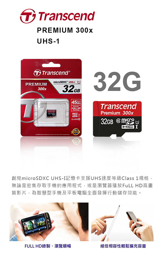 品名:BIGBUY【Transcend創見】32G MicroSDUHS-1 U1記憶卡