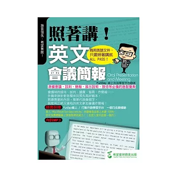 可以往下拉看看下方詳細介紹喔!如果你也想買 照著講!英文會議簡報:商用英語簡報,只要照著講就ALL PASS!(附1MP3),建議還是在博客來網路書店購買,可以在7-11取貨付款,真的很方便!